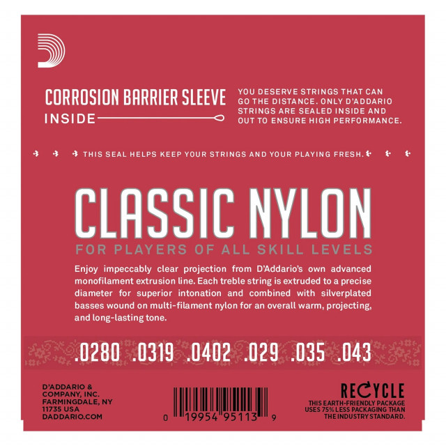 Jogo de Cordas Nylon Guitarra Clássica D´ADDARIO EJ27N de Tensão Média