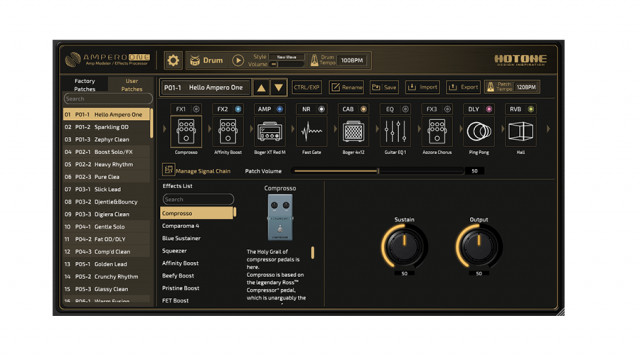 O Ampero One disponibiliza 242 efeitos baseados na incrível biblioteca XTOMP;